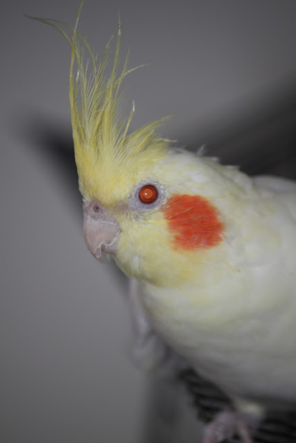 Teralla ja Dexterillä on nyt hetki aikaa tutustua toisiinsa ilman Hiron häirintää ja toivottavasti kiintyvät toisiinsa paremmin. Dex on kyllä varsinainen teini tällä hetkellä… Se laulelee ja kun laulu menee vähänkää väärään suuntaan mielestään niin alkaa rääkyminen. Sitten revitään näppäimiä ja johtoja ja jopa piirtopöydän kynää kädestä hmm… Todella rohkea nuorimies hän on jo, mikä on aivan mahtavaa. ja vielä suuremmaksi onneksi, Teran miesmakuun kuuluu perus harmaa väritteinen koiras, joten Dexterillä on hyvät mahdollisuudet! Jahka se saa nuo sulat vaihdettua… Tässä Dexin komea pilkkunaama