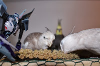 Suunnitelmana oli tietysti pesittää Kaiho ja Dexter, mutta äh, mitä enemmän tunnun suunnittelevan, sitä suuremmalla todennäköisyydellä kaikki menee jotenkin pieleen. Dexillä ja Kaiholla oli Pönttö ja toinenkin tuossa avissa, mutta niitä ei näyttänyt kiinnostavan. Tera sen sijaan ihan villiinty pesimisen suhteen. Se ei muuta tehnykkään kuin etsinyt pesää ja pesää. Viimeyönä heräsin viidenaikaan yöllä kun Tera rapisteli häkissä. Häkin pohjalla itseasiassa. Kuulin sen kiipeävän alas pohjalle ja kävelevän pohjalla kunnes se lopetti. Pistin valot päälle ja tarkistin. Se oli häkin pohjan nurkassa ja kun lähestyin, se sähisi ja keinui varotukseksi. Menin siitä sitten pois ja mietin että mitä oikeen pitäisi tehdä. En ollut varma aikoiko se munia, joten valvoin siinä ainakin tunnin ja seurasin vierestä sen liikkeitä. Ei se kumminkaan mihinkään ryhtynyt ja meni orrelle lopuksi. Aamulla kaikki oli ihan normaalisti.