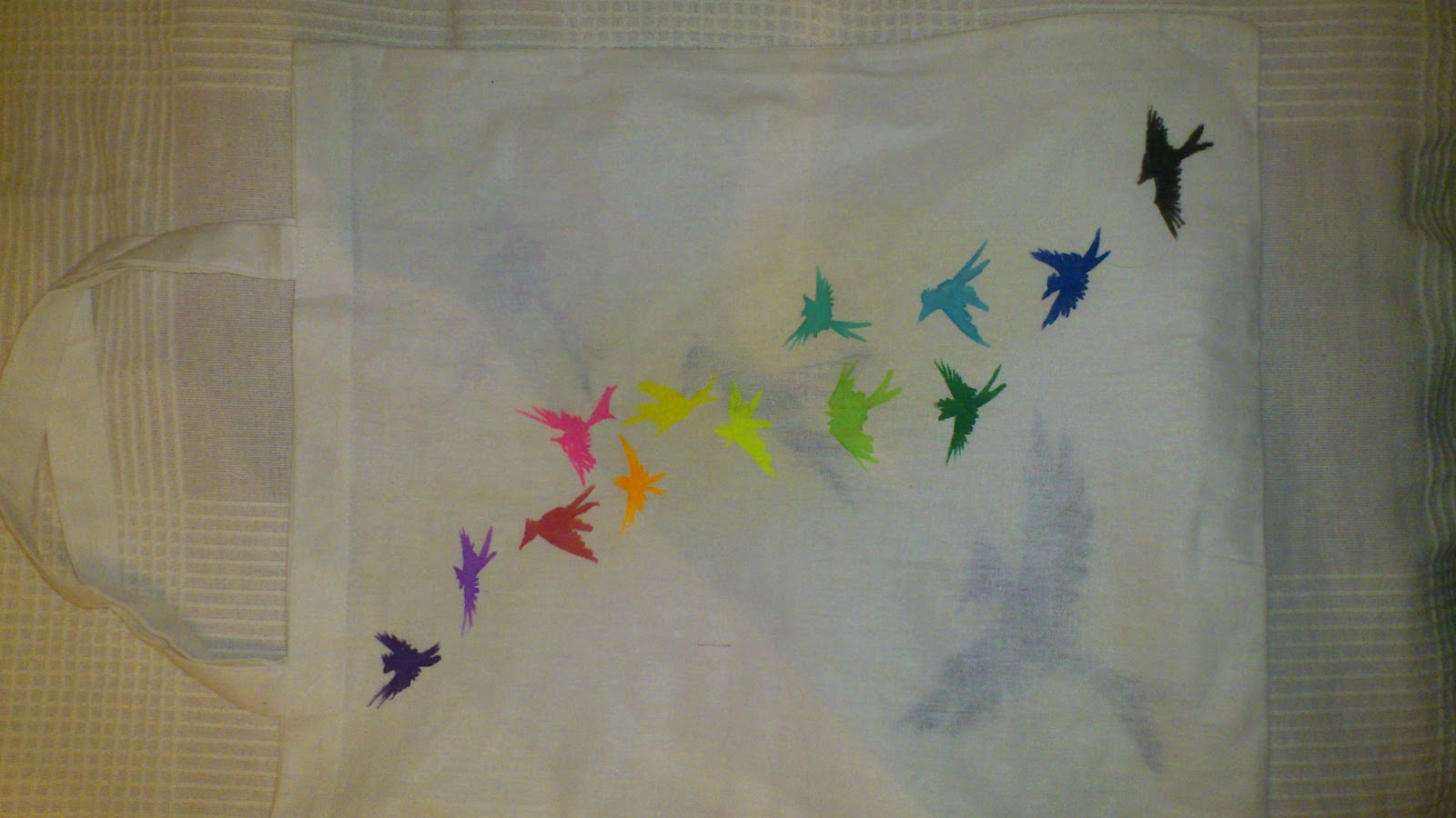 Olen näinä vaitonaisina aikoina tehnyt myös tavalliseen tapaan taidetta. Koulussa on ollut kankaanpainantaa ja olen nyt saanut aikaiseksi kangaskassin kuviooineen, ja paidan kuviooineen, mutta siitä uupuu vielä selkäpuolelta teksti “+100dB”