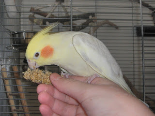Tein mielenkiintoisen havainnon kun rapsuttelin Teraa. Jokakerta, kun rapsutin sen korvan vierestä, laukesi Teralle jonkunlainen haukotusreaktio. Se haukotteli muutamaan otteeseen ja halusi lisää rapsutusta. Tein sen taan ja uudelleen ja uudellen. Sitten pidettiin parin tunnin tauko ja vielä uudelleen. Toiminut nyt joka ikinen kerta. Kyselin vähän muilta ja sama juttu. Kuulemma lajista riippumatta, linnut tekevät niin, esim jos itse rapsuttavat tai kaveri rahnuttaa juuri tietystä kohdasta niin haukottelu alkaa. Tosi jännää.