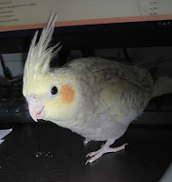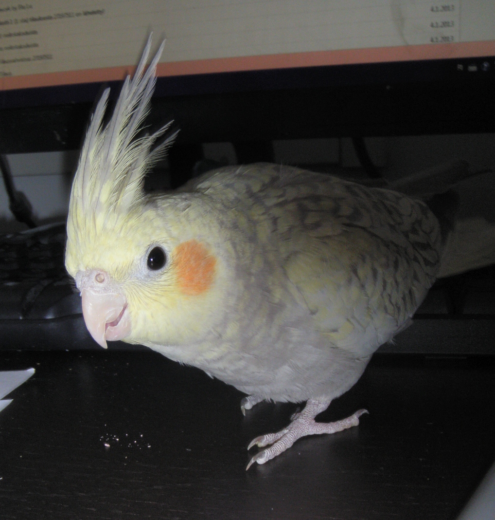 Sitten ihan perus kuulumisiin. Päästin Kaihon tänään vapaaksi, en vain kestänyt katsoa sitä häkissä kun muut saivat lennellä oman mielen mukaan. Se tahtoi niin selkeästi ulos, ja se ei pahemmin osoittanut stressin merkkejä ja vaikutti sen verran kotiutuneelta, että päästin nyt sitten päivä etuajoissa, tosin varotettiin, että saattaa kestää tavallista pidempää. Ihme ja kumma kaikki mitä Kaihosta on sanottu, on ollut vähän nurinkurin. Sitä sanottiin ujoksi ja se tuli käteen heti kun vaan hirssin huomasi. Yllätti kyllä niin positiivisesti, miten se tulee kädelle pidemmän välimatkankin päästä ja vaikka ei edes nähnyt hirssiä! Istuskeli tänään mun selässä ja kun yritin kuvata, lensi se määrätietoisesti kameran päälle. Se siitä ujoudesta. Todella mallikelpoinen ensimmäiseks vapaanaolopäiväks. Olen niin todella yllättynyt, ettei rajaa. AJ on taas uskaltautunut tulla tietokone pöydälle pällistelemään, eikä enään säiky niin kovasti vaikka kirjottelisinkin.